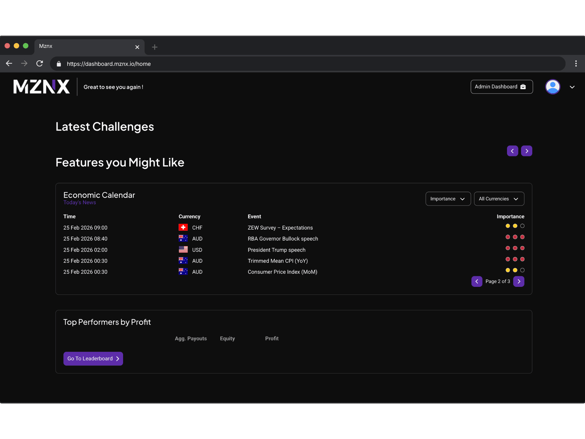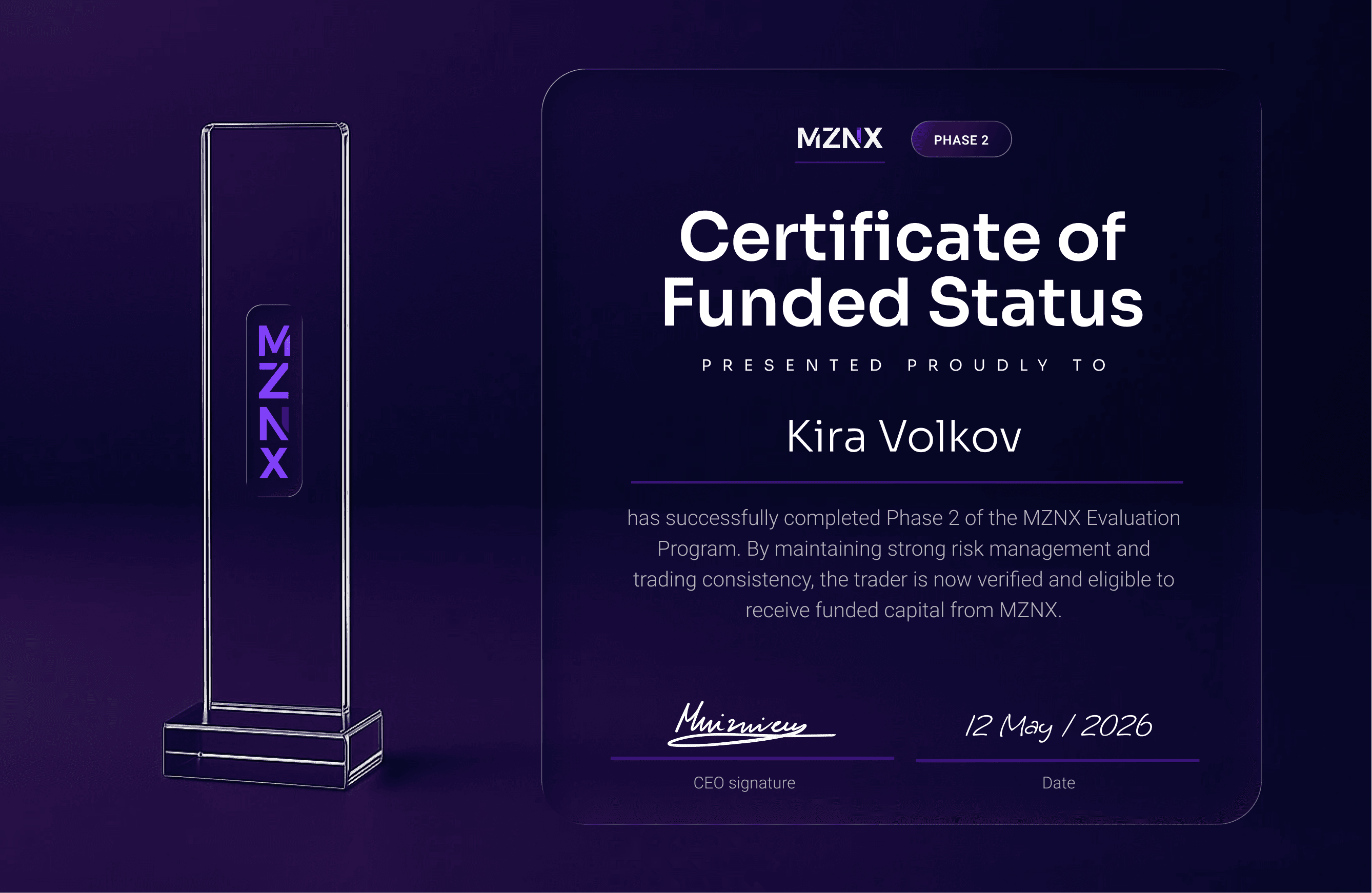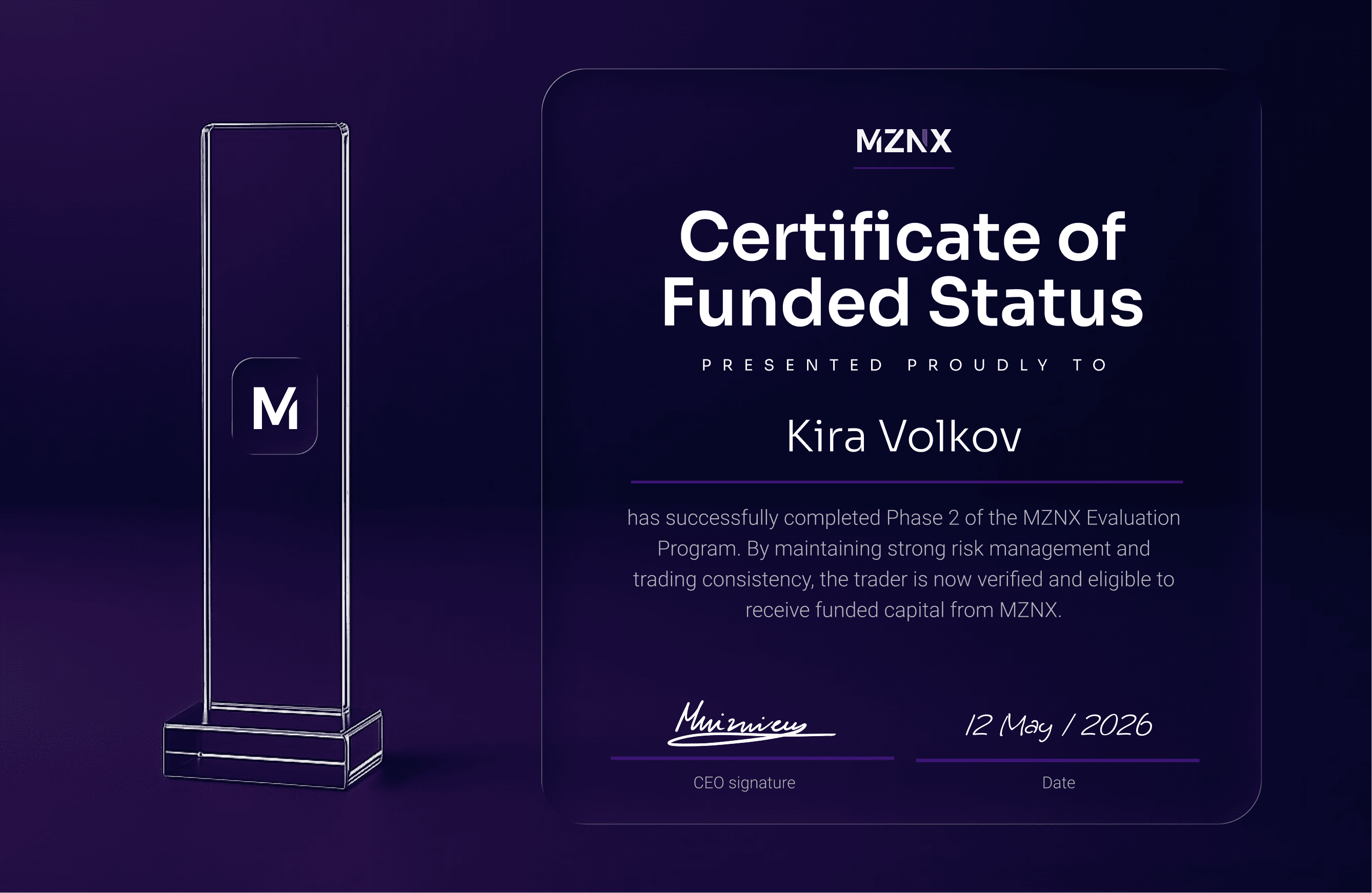 Turn your skill into capital. Choose your account size and start the MZNX Challenge.